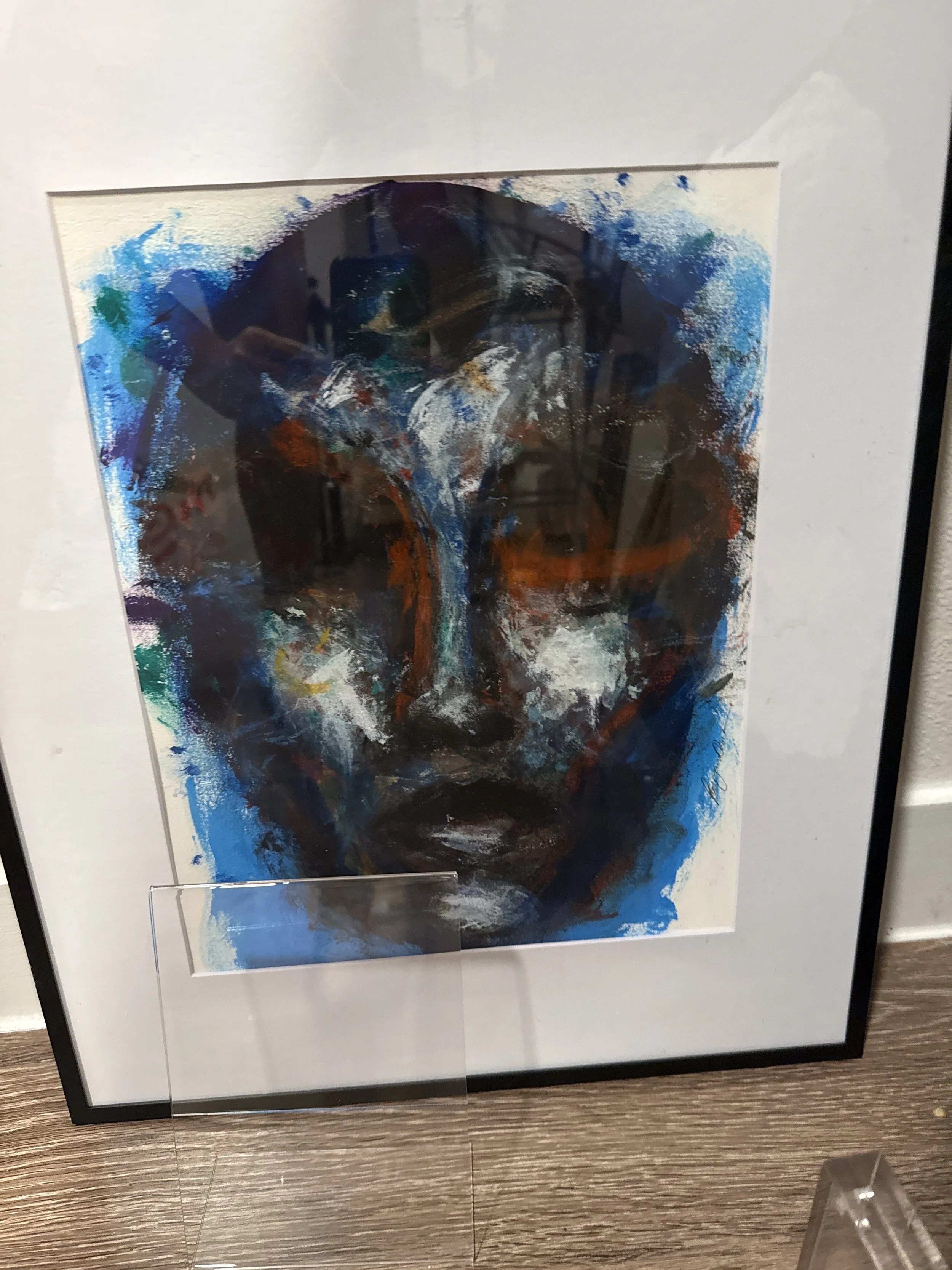 Medium: Acrylic on Arches 300lbs archival pressed paper, metal frame in UV-resistant glass.